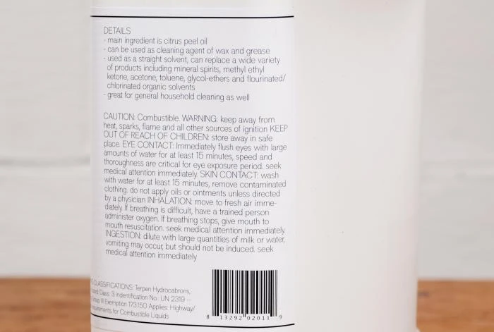 While Citrus Solvent is much safer than odorless mineral spirits, you’ll still want to use gloves and work in a ventilated area, as repeated exposure can develop sensitivities.
