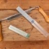 Although it was designed for sharpening knives, in the Gramercy workshop, we love making custom scrapers, scratch beaders and cutters and the Diafold Serrated Knife Sharpener is great for that. The exceptionally narrow tip gets into tight curves that a stone can’t and the diamond abrasive can cut full hard tool steel or carbide. This isn’t an everyday sharpener (unless you happen to be a bread-knife maker) but it’s a good sharpener, that does a job many others simply can’t.