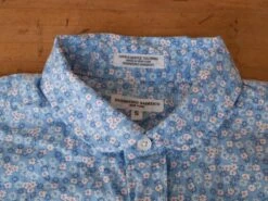 The shirt is single needle tailored throughout. This labor intensive method of construction renders seams that lay flatter, and won’t pucker over time like as double stitched seam. The side seams are gusseted for durability.
