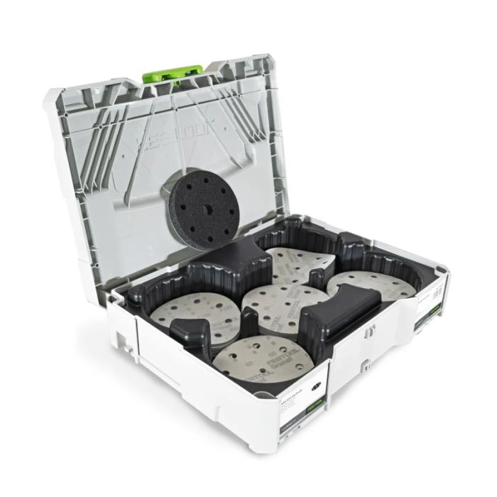 The set consists of 100 pieces of the most popular grits of Granat sandpaper (60 – 220 grit) all stored neatly in a special Systainer insert, along with an Interface pad that stores in the Systainer’s lid. The grit selection includes the following: