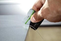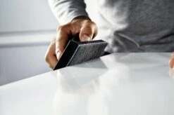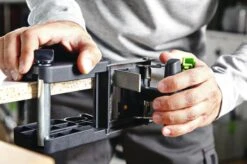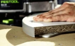 In typical “Festool is a system” fashion we also offer a edge trimming set which is available separately or at a discount if you buy it with the machine. The kit includes an ingenious guillotine trimmer to flush trim the ends of the banding after you are done, an elegant street scraper for cleaning up edges of any excess glue that might remain, a polishing pad, a felt protector for delicate surfaces, and an additional roller for adding an addition pressure point to the edge banding application. All of the accessories come packed in a systainer. In our list of parts and pricing for the Conturo all the accessories are also offered separately but the accessories included in the kit are starred.
