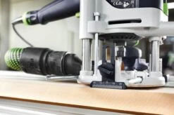 You can handle the tool with one hand (switch it on, position it, do your routing, move it around and switch it off) so your other hand can steady and guide your work. Its handles are shaped for working from above or from the side. And of course it works with Festool’s famous dust extraction to keep your work clean and efficient. The 1010 router comes with a three position depth turret with 1/256″ micro-adjustable positional accuracy. An integrated dust extraction port allows you to easily plug into your vacuum. 1010 watts (8.5 Amps). 10,000 – 23,000 rpm, 2 1/8″ maximum plunge range. The 1010’s weight is 5.94 lbs.