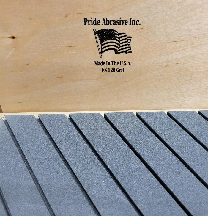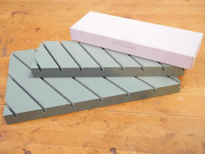 Pride Abrasives, a family run company, manufactures two sizes of flattening stones: a smaller 9″x3″ stone and a larger 10″ x 6″ stone.