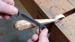The Drawknife is made of 3/16” O1 steel for rigidity and authority in use. We do all the machining, hardening, and sharpening ourselves in our Brooklyn workshop to ensure quality. Our hardening process for O1 relies upon carefully timed and controlled heat, soak, and quench times to ensure a fine, long-lasting edge. We then grind and buff the cutting edge to razor sharp so you can use it immediately, right out of the box.