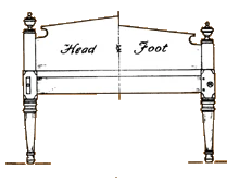 From the Single Sisters House in the Moravian town of Old Salem, North Carolina, walnut, c.1700. The sketch shown here gives a fair idea of the head and foot boards and posts. H.29, posts 2 1/2 sq. This piece is part of the Old Salem Collection in Winston-Salem, North Carolina.