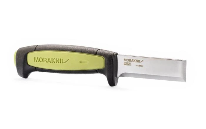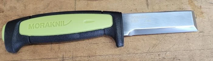 Wear the chisel knife on your tool belt, tuck it in your tool bag or even hang the sheath on your jacket’s button – just have it with you and you’ll find a thousand reasons why you’ll be glad you did. Blade Thickness: 0.12 in (0.31 cm), Blade Length: 3.0 in (7.5 cm), Total Length: 7.75 in (19.7 cm), Net Weight: 4.9 oz (139 g). Comes with sheath.