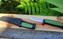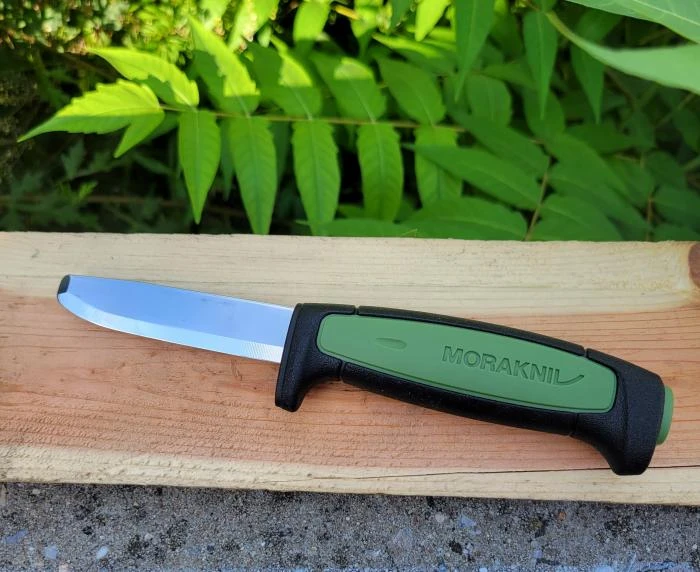 The plastic sheath protects the blade from damage and protects fingers from stab wounds. Made in Sweden.
