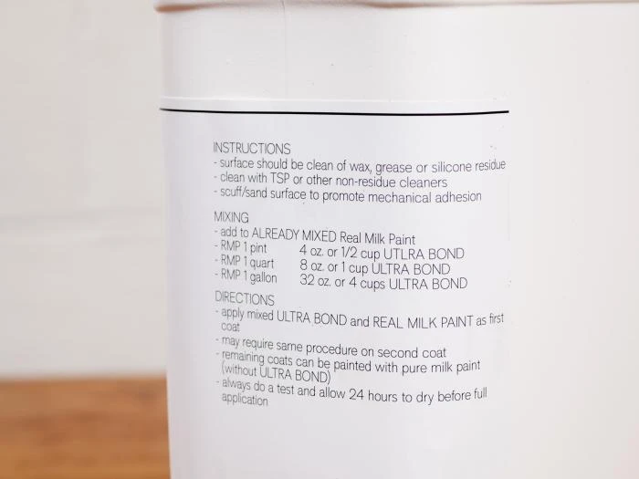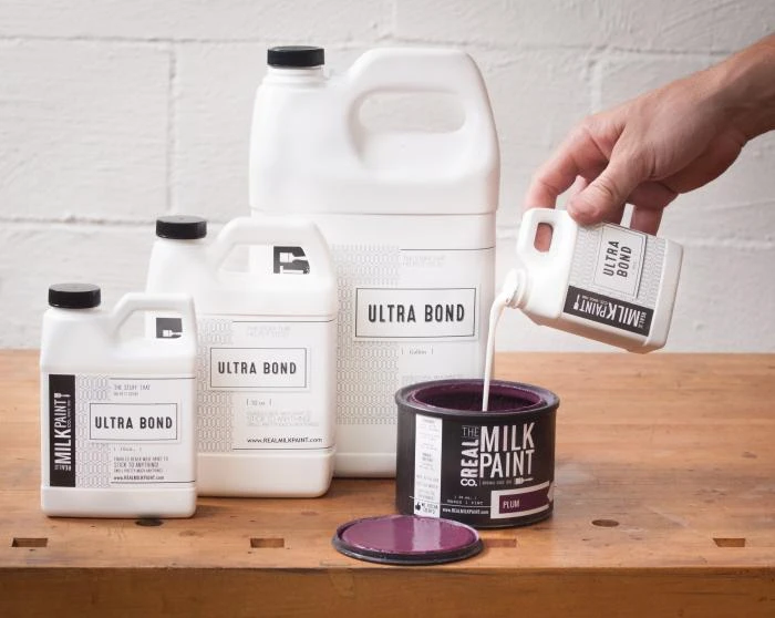 Though Ultra-Bond first brings to mind the noxious gray putty used for fixing car dents, itβs completely non-toxic and shudder-free, releasing no VOCs. Use this at a 25% Ultra-Bond to 75% Real Milk Paint when painting over non-porous or previously painted surfaces. Ultra-Bond will help Milk Paint apply to glass, metal, some plastic surfaces (including melamine), lacquered, shellacked, and varnished surfaces, as well as oil or water-base polyurethane. It has a minimal, sweet odor and white color at first, but once dry it is clear and odor-free, and will not affect the color of the paint.