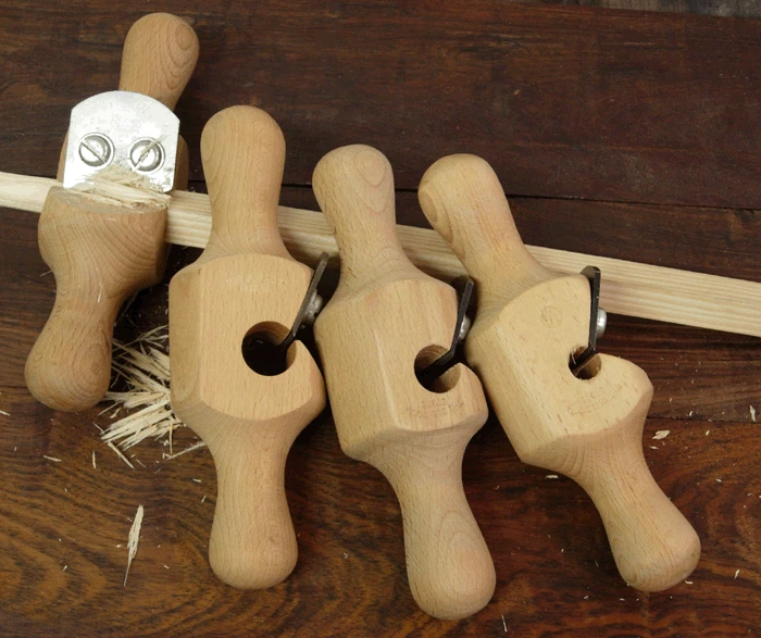 Clamp up the piece of wood that is to be rounded, and then rotate the rounder – just as you would a pencil in a sharpener. It works like a charm! The rounder feels great in the hand and its metalwork is all that you would hope for. The blade is correctly curved so that the wood is easily shaved off. Two heavy screws keep the blade rock solid in position, but of course there is enough room to adjust the blade as it wears. According to the maker, Ray Iles, the key is setting the iron so that the finished dowel fits very snugly in the guide hole as it is cut. Almost at squeaking tight, Ray says. The handles are traditionally shaped and are very comfortable. Sharp and ready to use. Comes with instructions.