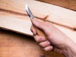The unassuming beech handles offer a stable grip that tapers down toward the blade for control during detail work. The beech wood is finished only with raw linseed oil, and will quickly patina with use. The joy of carving spoons and whittling figures is never so great as it is with a sturdy, sharp knife!