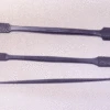 We have listed these double-hooped, fine quality, hand forged gouges in both the specialist chisel department and our carving department because their appeal to both cabinetmakers and art carvers. We carry two types: Out-cannel, which, like most carving tools, are ground with the cutting edge on the inner edge of the tool (the uppermost gouge in the illustration), and in-cannel, which are ground with the cutting edge on the outer edge of the tool (the lower gouge in the illustration). Overall lengths of approximately ten to eleven inches. Made in Germany.